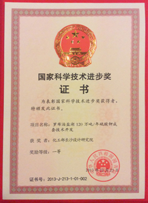 羅布泊鹽湖120萬噸/年硫酸鉀成套技術(shù)開發(fā)—國家科技進(jìn)步一等獎(jiǎng)